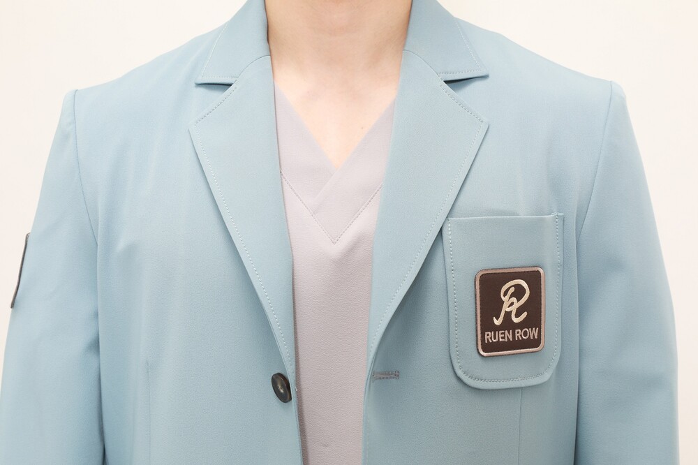 -랩코트, 스크럽복은 스판사가 들어간 신축성이 뛰어난 원단입니다. 반드시 손세탁 하십시오.