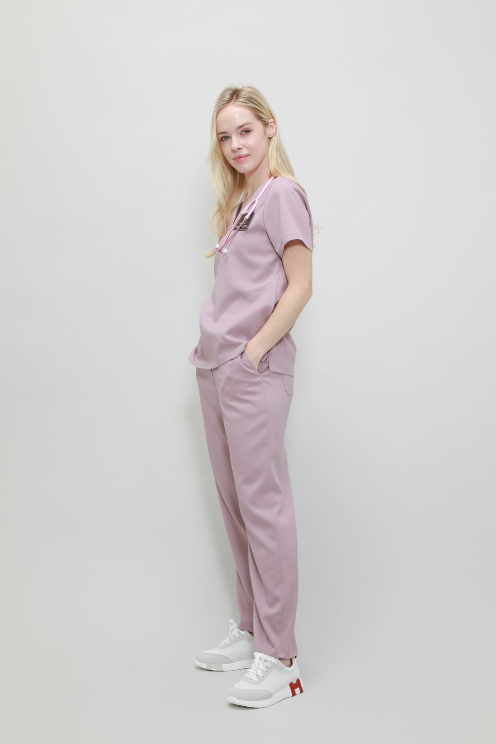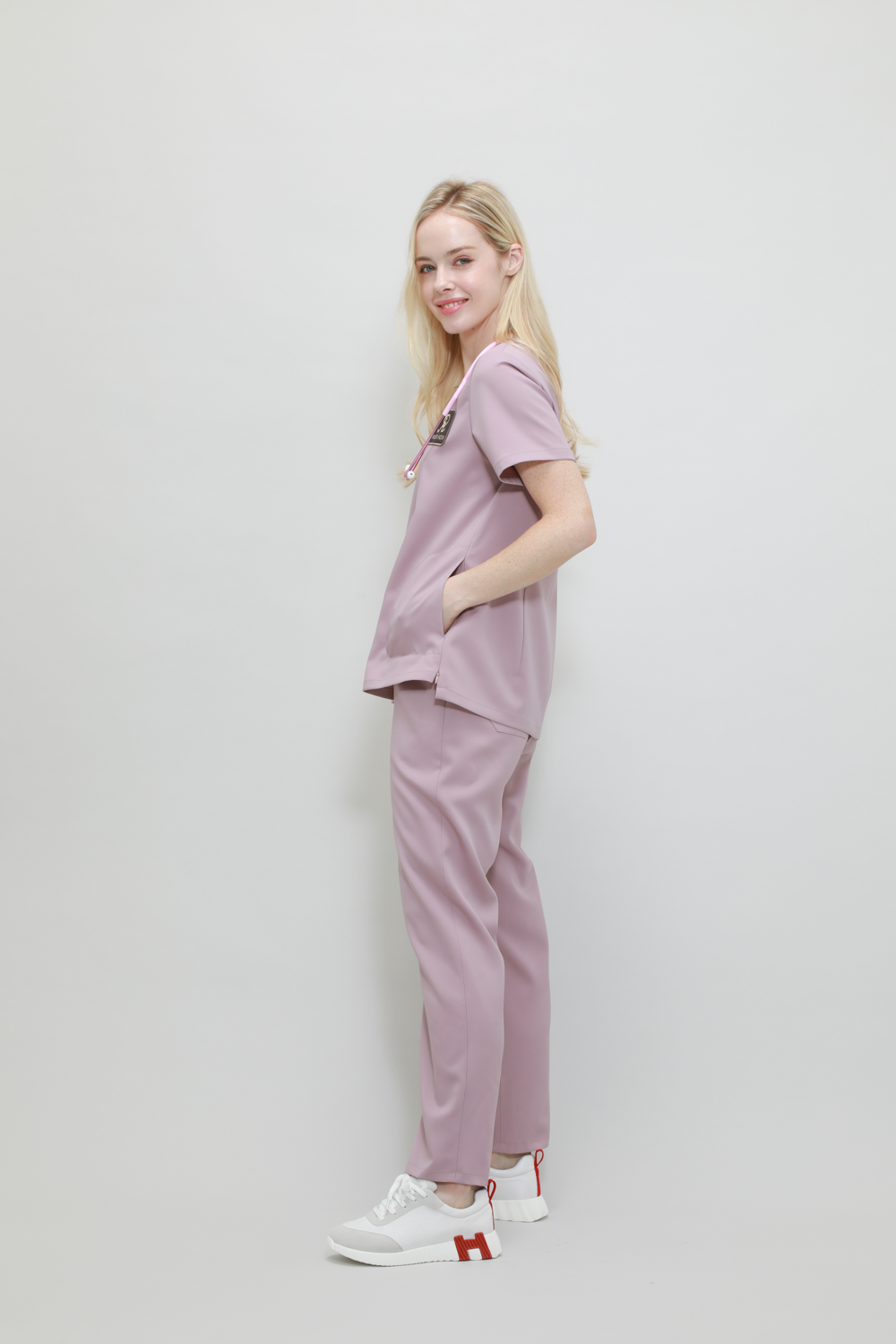 루엔 옆 지퍼 스크럽 여성 / Indi Pink