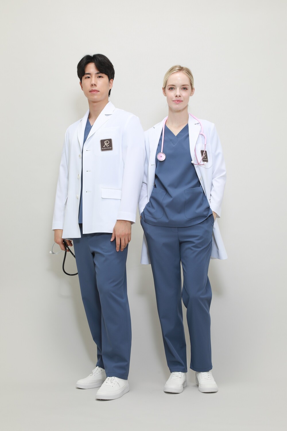 -랩코트, 스크럽복은 스판사가 들어간 신축성이 뛰어난 원단입니다. 반드시 손세탁 하십시오.