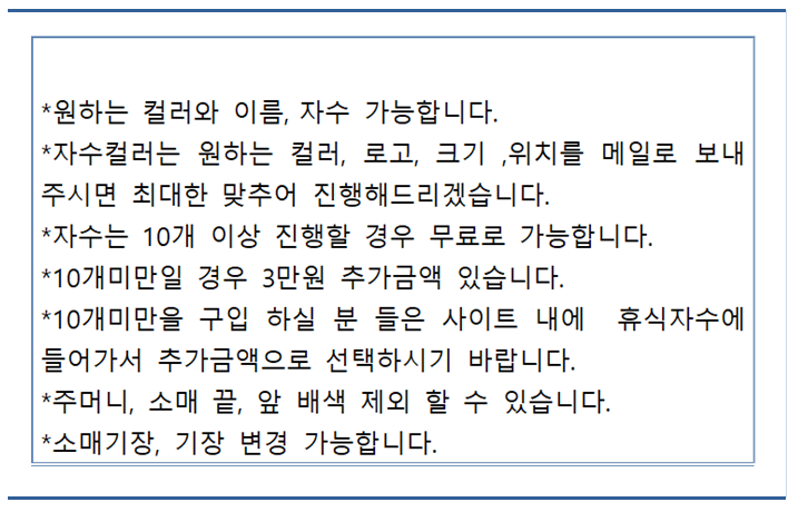 -주문시 와펜이나 로고자수는 맞춤제작 입니다. 도안 컴펌후 수정할경우 수정비가 들어갈수 있습니다.